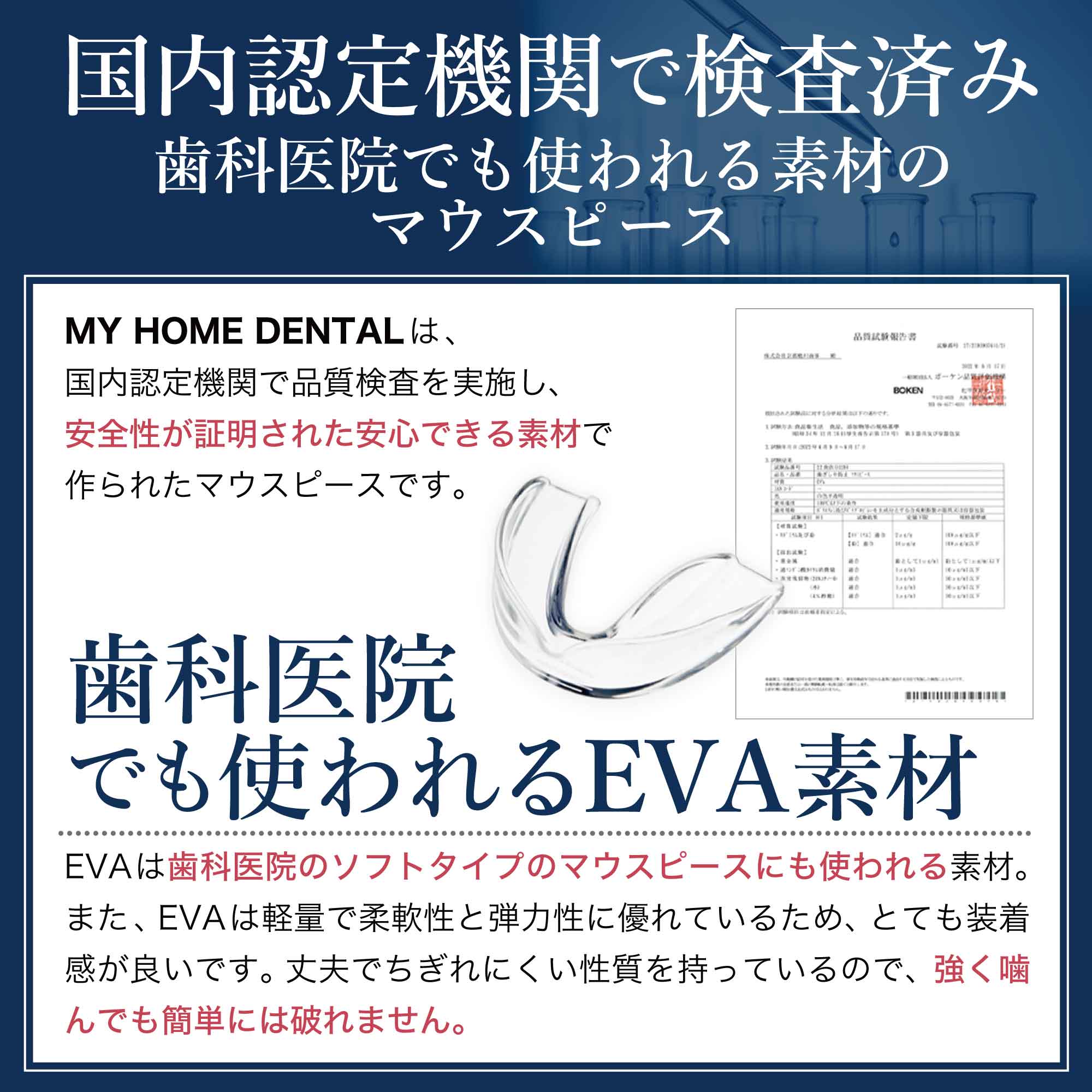 MY HOME DENTALは、歯科医院のソフトタイプのマウスピースにも使われるEVA素材を使用しています。